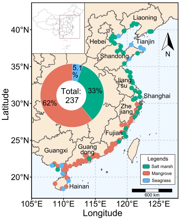 中国滨海湿地的退化与丧失严重威胁了关键的气候缓解功能和生态系统服务。尽管国家在湿地修复方面投入了巨额资金,但这些投入背后的经济效益理性长期以来尚未得到充分理解。为了回答这一关键问题,中国科学院华南植物园小良站研究团队开展了一项综合数据分析,涵盖了2000年至2020年间中国237项滨海湿地修复项目,总投资额高达88.7亿至138亿美元。